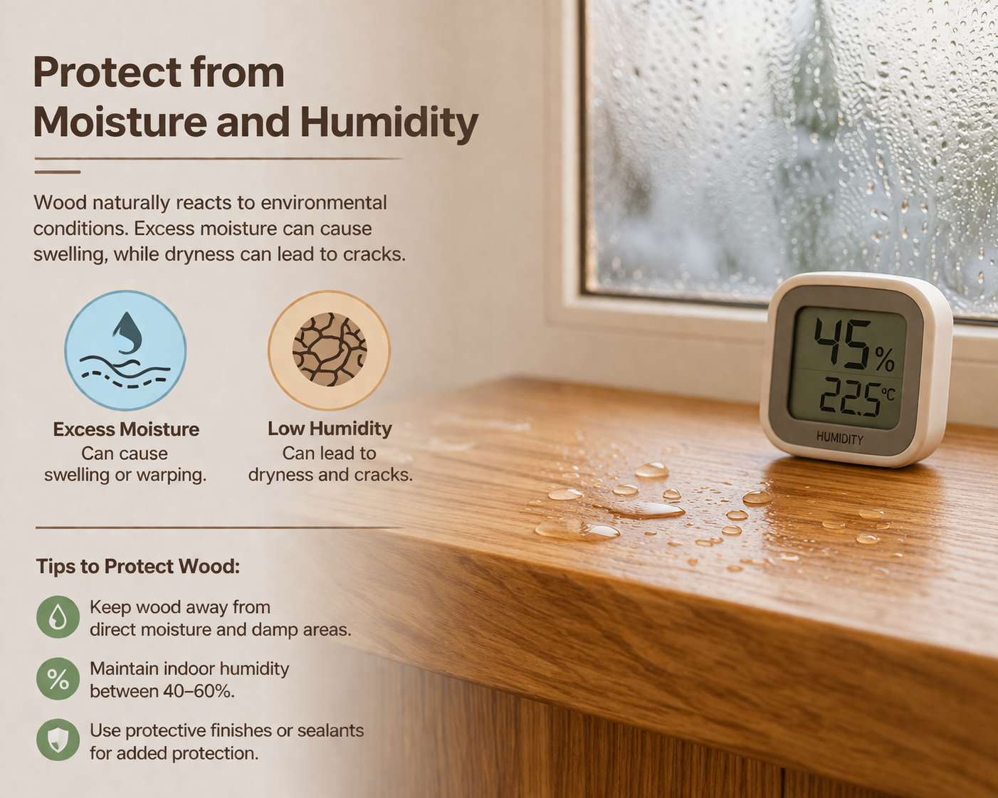 Maintaining balanced humidity helps preserve both the shape and strength of furniture.